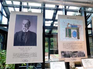 サムエル・コッキングが明治20年頃に巨額の私財を投じて植物園の一画に建設した約1,100㎡の温室は、大正12年の関東大震災等ですべての上屋が倒壊し、煉瓦を主体とした基礎部分や地下につくられた施設のみが残されています。