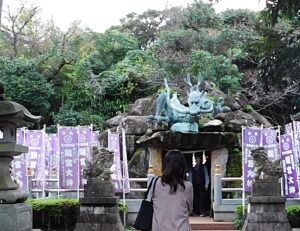「御岩屋道通り」の坂道を下って「奥津宮」、「龍宮」に立ち寄り、今回の観光の最終的な見学場所になるだろうと思われる「江の島岩屋」に向かいました。