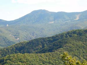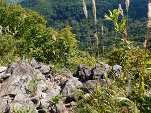 きつく感じた二の坂を登って行くと岩場のちょっと開けた広場に出て、そこからはゴルフ場を眺めることができ休憩をとるには良い場所となっていました。