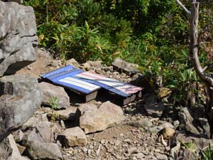 いよいよ山頂です、スリルある岩場になっていて小さめ控えめな山頂標識付近には十数人が座れそうなスペースがありました。