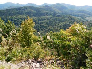 ↑ 九合目、山頂へ向かう最後の坂道の手前にある少し開けた広場からの眺め